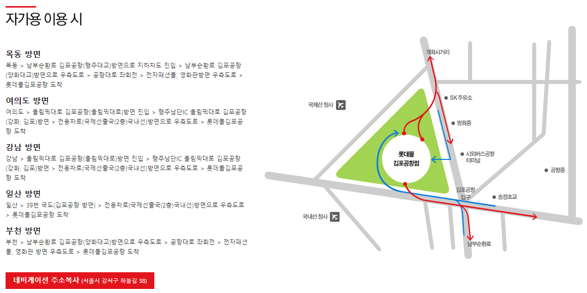 자가용 이용시 네비게이션 주소는 '서울시 강서구 하늘길 38'을 입력하고 찾아가시면 됩니다.
